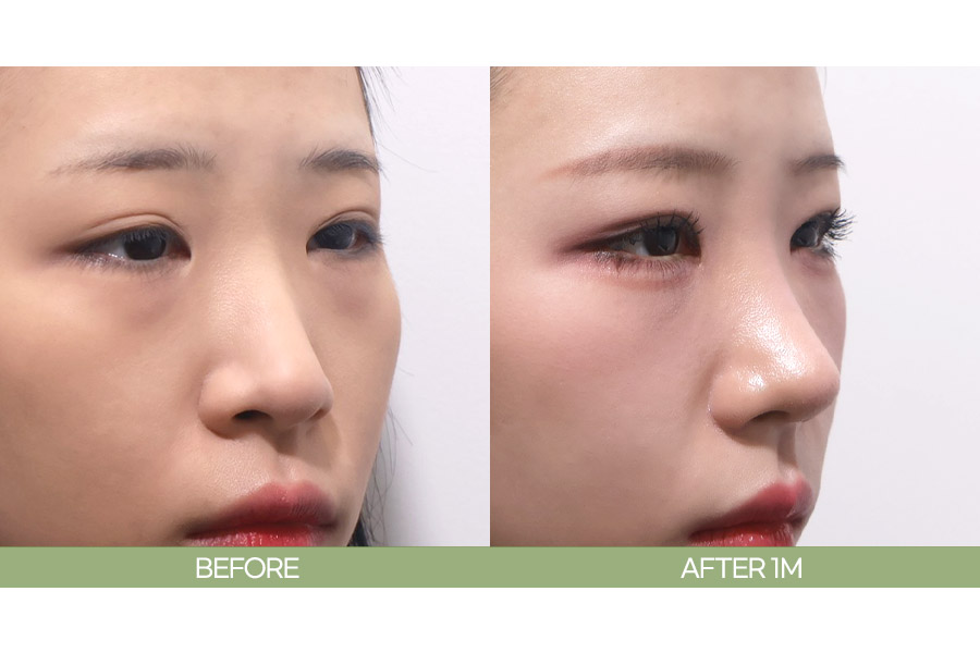눈재수술(비절개쌍꺼풀&눈매교정)+눈밑지방재배치+무보형물 코끝성형(비중격)+복코교정+콧볼축소_1개월차